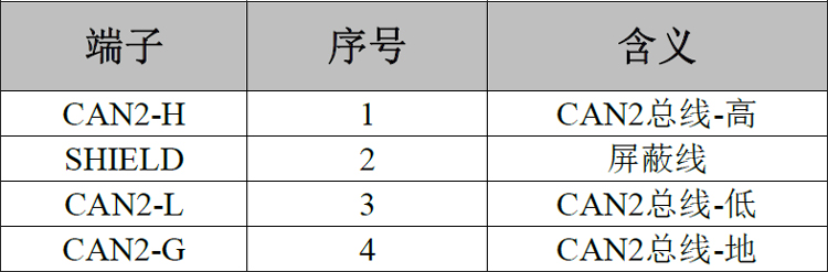 表2.2 GCAN-PLC-511的CAN2总线端子定义