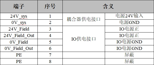 表2.1 GCAN-PLC-530的总线与控制器电源接口定义
