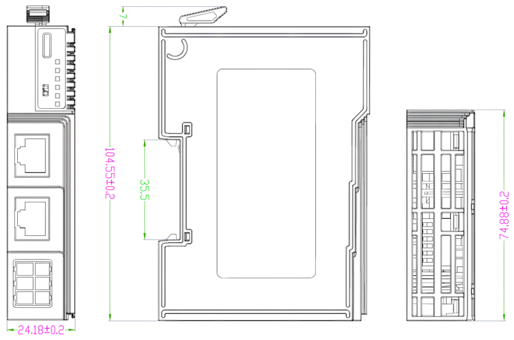 图2.1 GCAN-IO-8201 EtherCAT 总线耦合器外观及尺寸图
