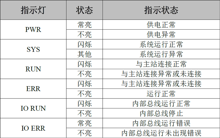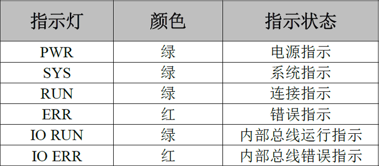 表2.3 GCAN-IO-8201 EtherCAT总线耦合器模块指示灯