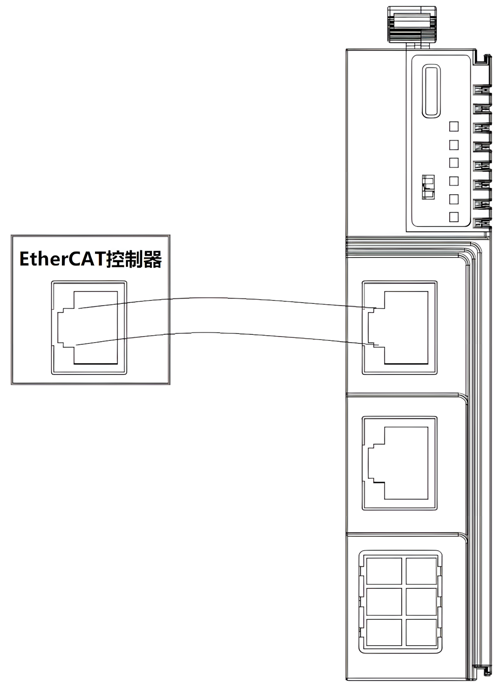 图3.1 GCAN-IO-8201 EtherCAT 总线耦合器与EtherCAT 控制器连接