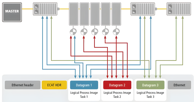 图3.2 GCAN-IO-8201 EtherCAT 总线耦合器接入总线数据流