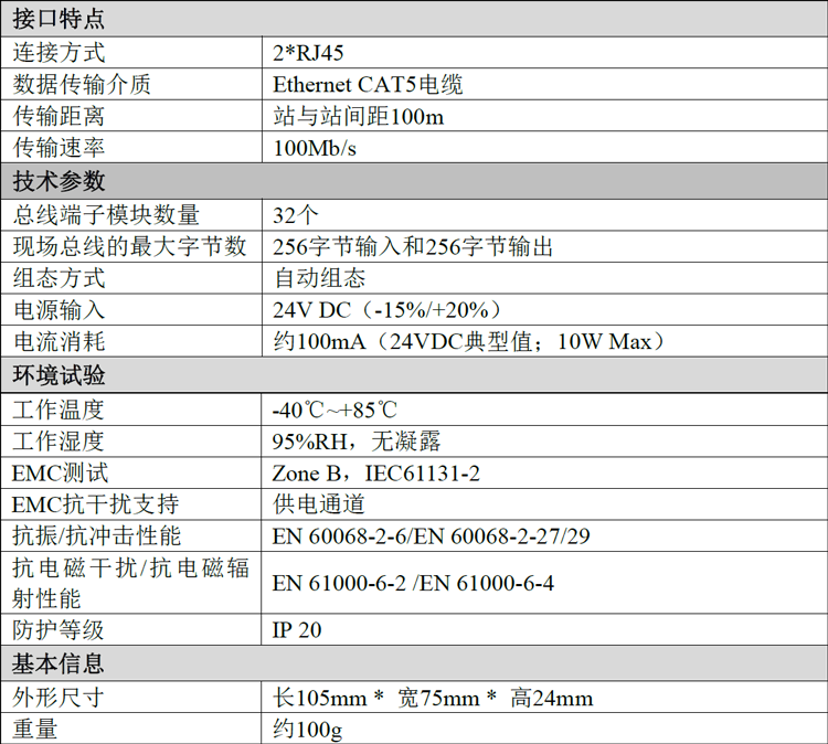 GCAN-IO-8201 EtherCAT总线耦合器使用Ethernet CAT5线缆(五类双绞线)与EtherCAT主站以及其他从站设备相连接,GCAN-IO-8201 EtherCAT总线耦合器配备有2个RJ45接口,可方便用户将GCAN-IO-8201 EtherCAT总线耦合器串入EtherCAT总线。