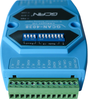 请注意:通过拨码开关改变GCAN-4038模块的参数之后,需要重新对模块上电之后,新的参数才会生效。