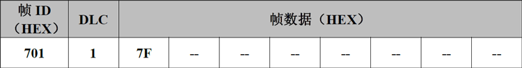GCAN-4038模块满足标准CANopen CiA 301协议,是标准的CANopen从站设备。GCAN-4038启动后将主动发出数据给主站,帧ID为0x700+Node ID。帧数据为0x7F,默认循环时间为1s(对象字典0x100C,节点守护时间)。这说明节点处于预操作状态。