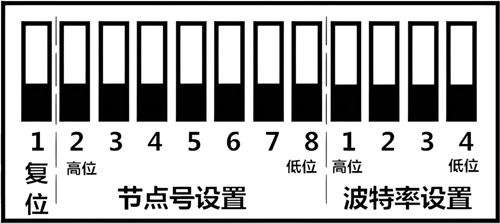 ● 使用拨码开关配置模块波特率及节点号;