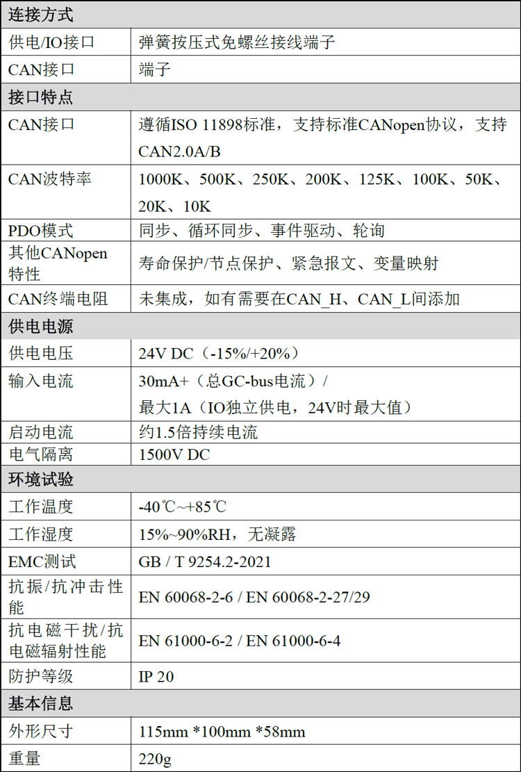 ● CAN-bus接口采用电气隔离,隔离模块绝缘电压:DC 1500V;