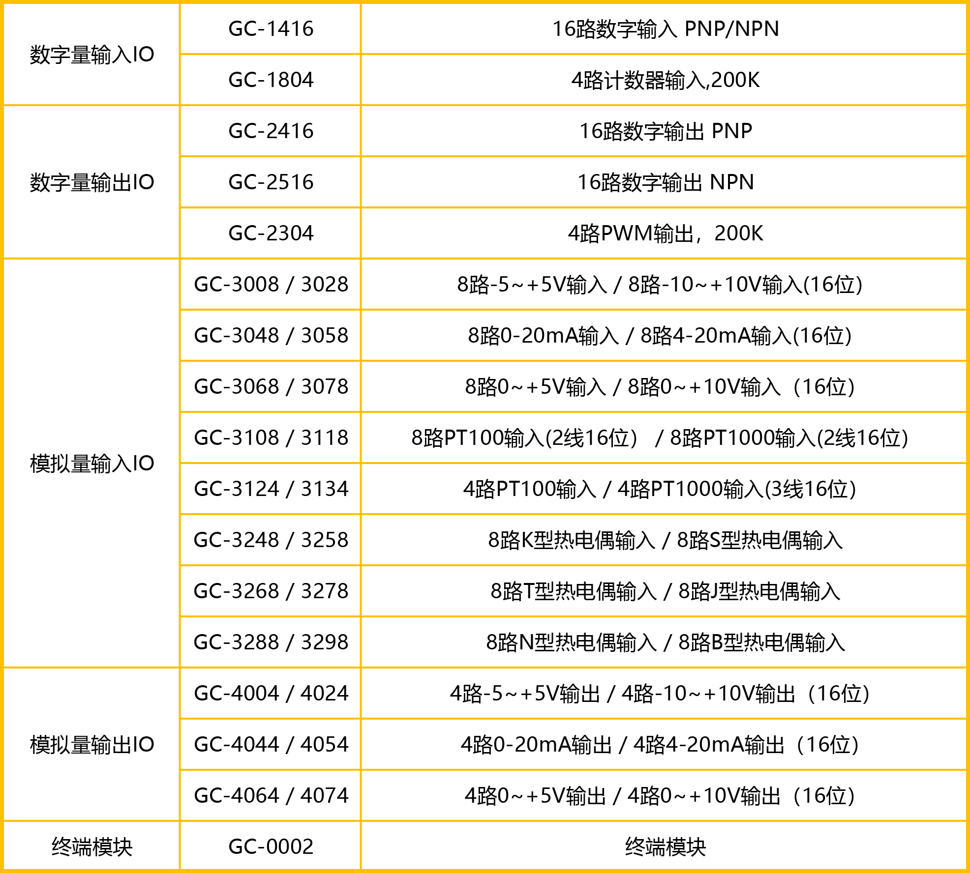 GCAN-IO-8001型CANopen总线耦合器可搭配IO插片类型: