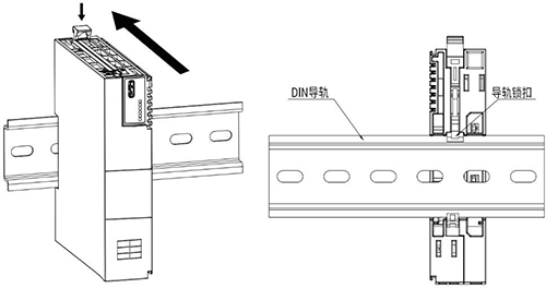 ● 如果DIN导轨锁扣在下方,则为锁定状态。