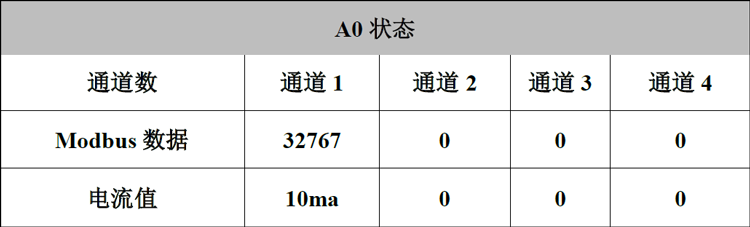 其中,代表第一通道的两个字节,第一个字节为低位,第二个字节为高位,如果第一通道给定数值为32767,则4044输出电压为10ma。