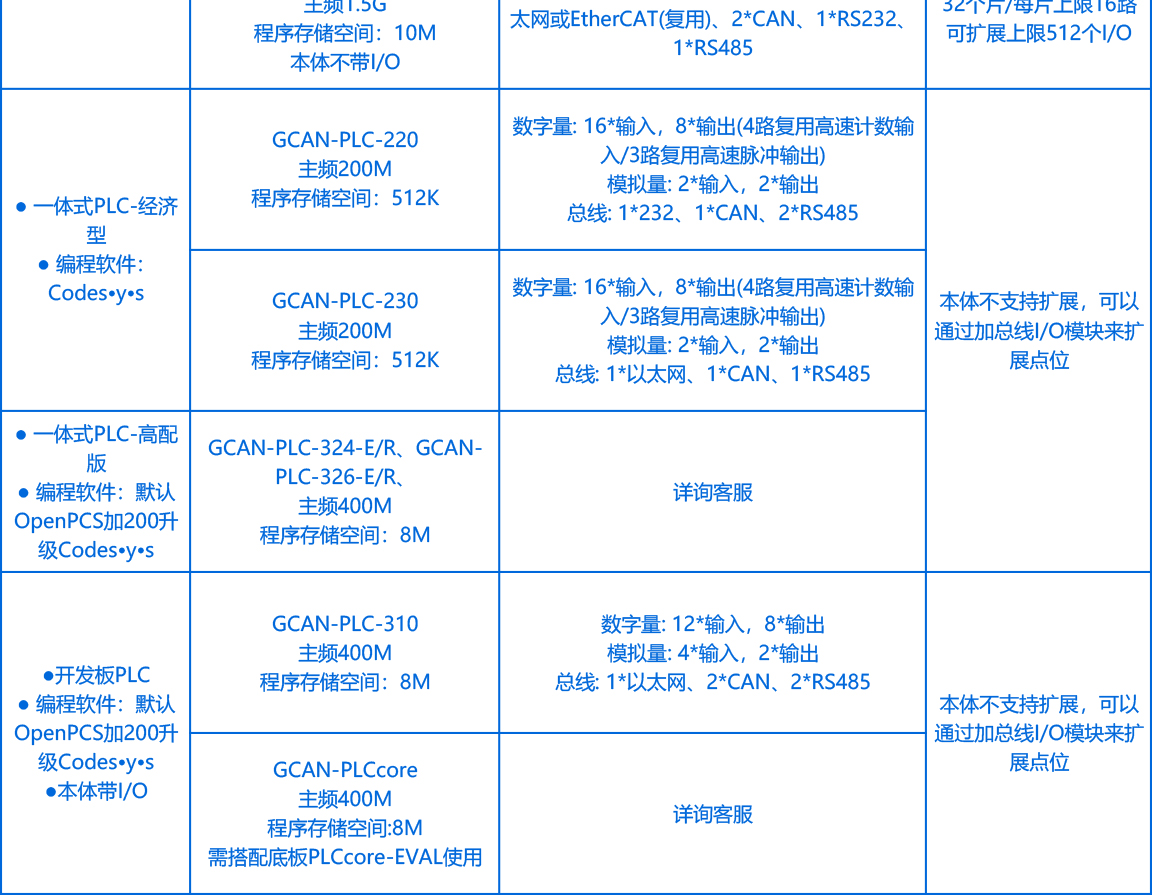 一体式PLC设备链接组合式PLC设备链接(支持EtherCAT)组合式PLC设备链接(不支持EtherCAT)PLC核心开发板