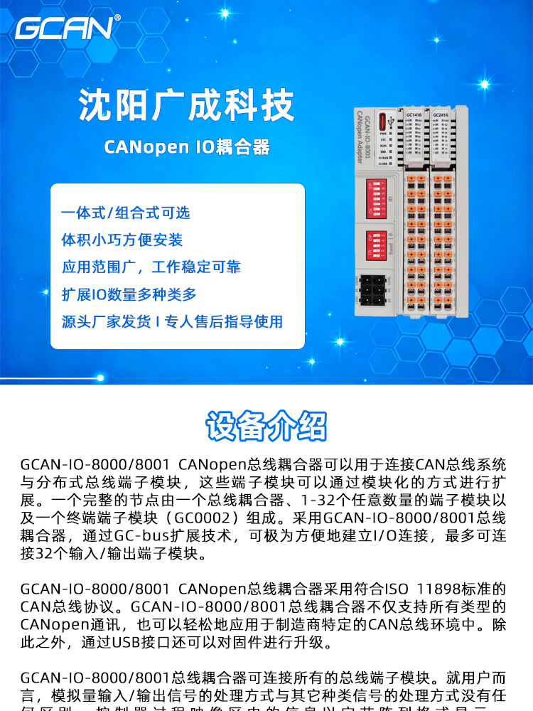 GCAN-6057 8路数字量输入8路数字量输出CANopen IO耦合器