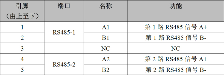 表2.2 2路485路接口定义
