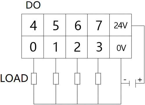 DO端子排晶体管PNP输出接线如图所示:
