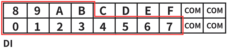 上方两排端子为DI端子排,分别为DI0~DI7,DI8~DIB共12个数字量输入点,以及4个DI的COM接口(4个COM口内部已短接,任意连接1个即可),如图所示。各个端子对应的序号及其含义如表2.5所示。