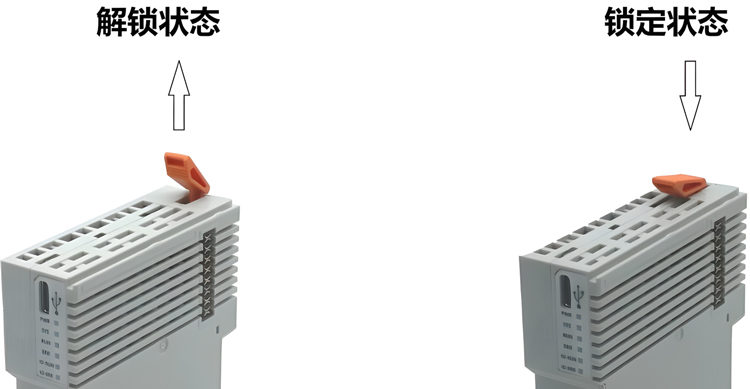 图2.2 GCAN-PLC-325可编程逻辑控制器模块锁定和解锁状态