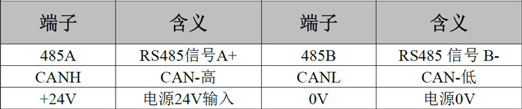 表2.2 GCAN-PLC-325 RS485+CAN+电源接线端子定义