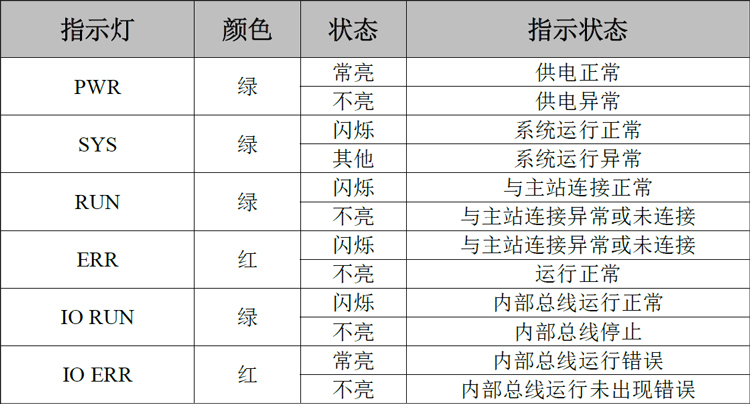 表2.3 GCAN-PLC-325模块指示灯状态