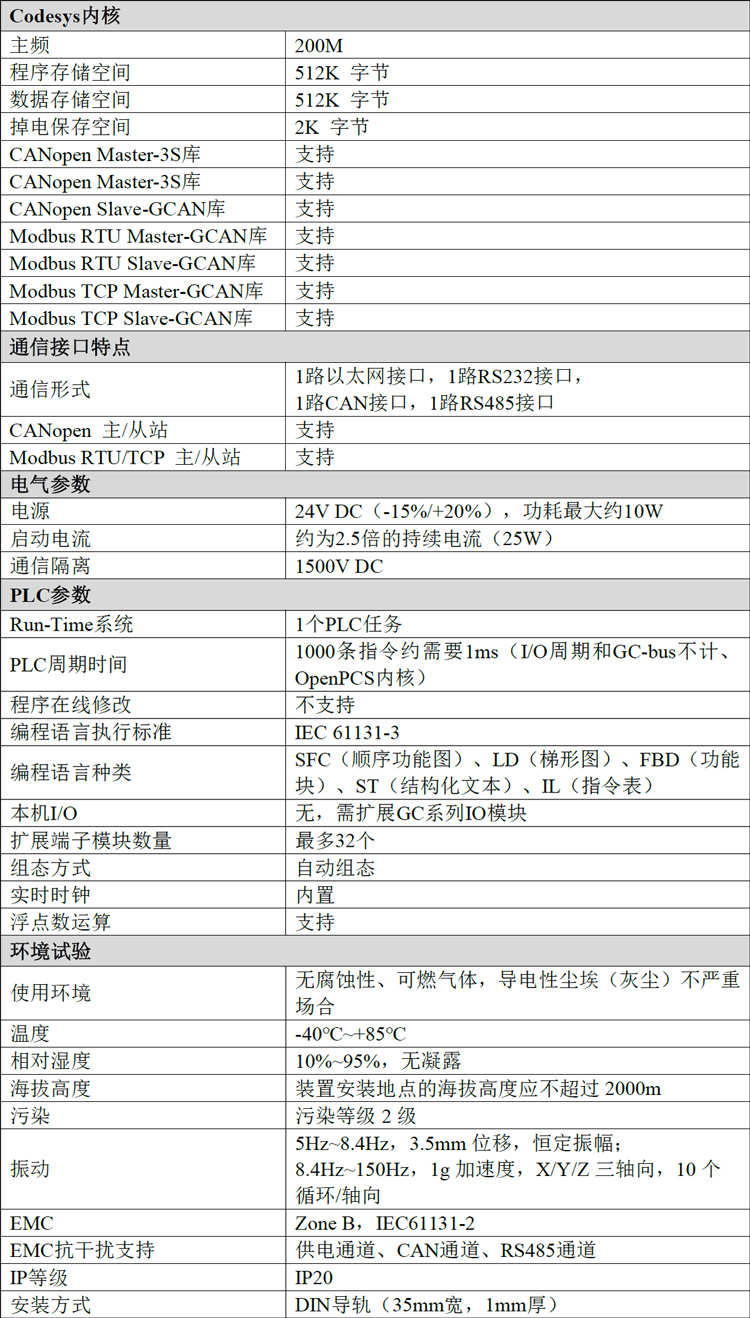 GCAN-PLC-325可使用OpenPCS软件对其编程,也可使用CodeSys V3.5SP16及以上版本软件对其编程。软件支持符合IEC-61131-3标准中规定的五种标准编程语言,这使得程序的可移植性和复用性很强,而且软件还具有多种调试功能(断点、单步等),调试程序更加方便。