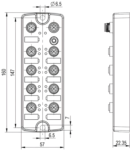 GCAN-6057 CANopen远程IO模块有两组指示灯,分别为系统状态指示灯和DAT指示灯。