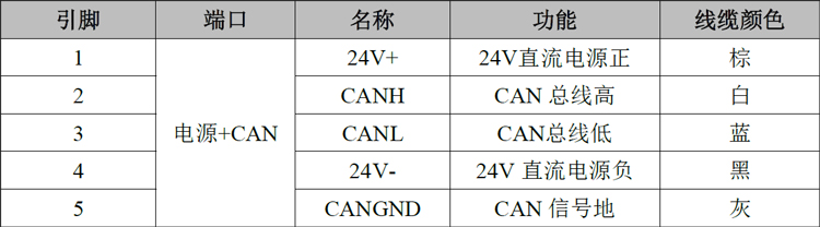 GCAN-6057模块自带插头及线缆,线缆颜色详见下表: