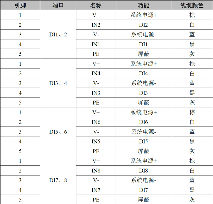 表2.3 GCAN-6057 CANopen模块DI端子定义