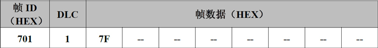 例如:通过拨码开关设置GCAN-6057的Node ID为1(以下节点号均为1),则USBCAN-II Pro作为主站设备可接收到一条节点状态数据,帧ID为0x701,帧数据为0x7F。如图4.1所示,使用GCANTools软件可以收到这条数据。启动数据中,帧数据的第一个字节为节点状态值(Node state values)。当该值为0x04时,说明节点处于停止状态;当该值为0x05时,说明节点处于操作状态;当该值为0x7F时,说明节点处于预操作状态。