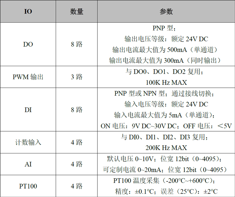 ● 8路DO(复用3路PWM脉冲输出);8路DI(复用4路计数输入);