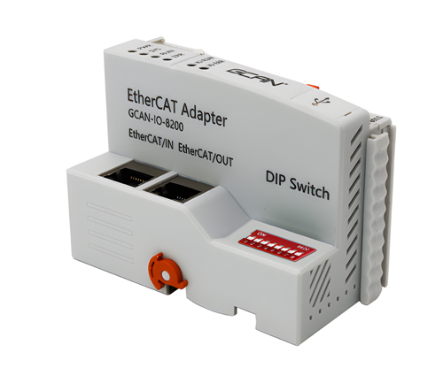 GCAN-IO-8200 EtherCAT总线耦合器使用Ethernet CAT5线缆(五类双绞线)与EtherCAT主站以及其他从站设备相连接,GCAN-IO-8200 EtherCAT总线耦合器配备有2个RJ45接口,可方便用户将GCAN-IO-8200 EtherCAT总线耦合器串入EtherCAT总线。