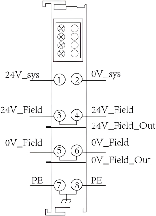 图2.5 GCAN-IO-8200 EtherCAT总线耦合器模块电源接线端子排