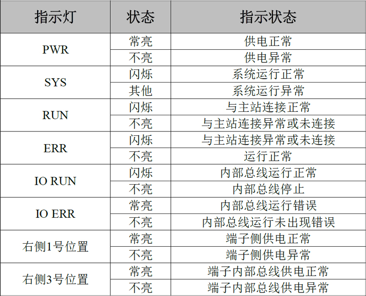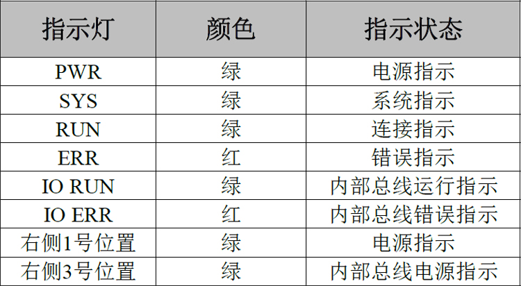表2.3 GCAN-IO-8200 EtherCAT总线耦合器模块指示灯