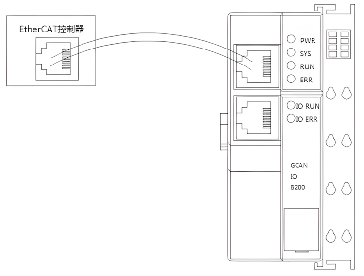 图3.1 GCAN-IO-8200 EtherCAT 总线耦合器与EtherCAT 控制器连接