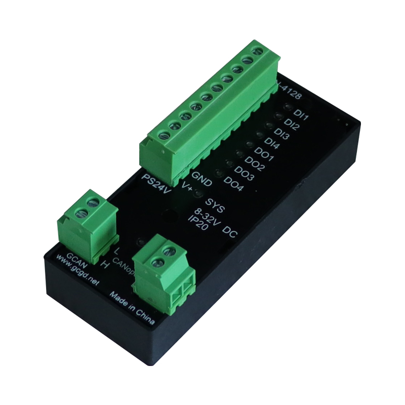 - GCAN-4128模块是集成1路CAN总线,2个CAN接口、4路数字量输入通道、4路数字量输出通道的工业级CAN/CANopen模式数字量输入输出模块。采用GCAN-4128模块,用户可用于采集数字量输入信号,并输出数字量信号,控制开关,实现远程开关设备和CAN网络之间的连接,构成CAN网络中数字量信号采集、输出的控制节点。
